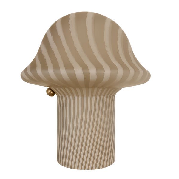 This charming vintage table lamp was produced by Peill & Putzler in Germany during the 1970s, and it’s a beautiful example of Mid-Century Modern lighting design. The lamp features the brand’s iconic mushroom silhouette, crafted entirely from striped white opaline glass — a material known for its soft diffusion of light and timeless elegance.