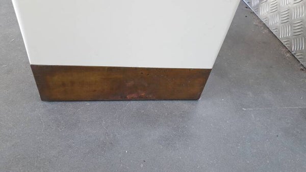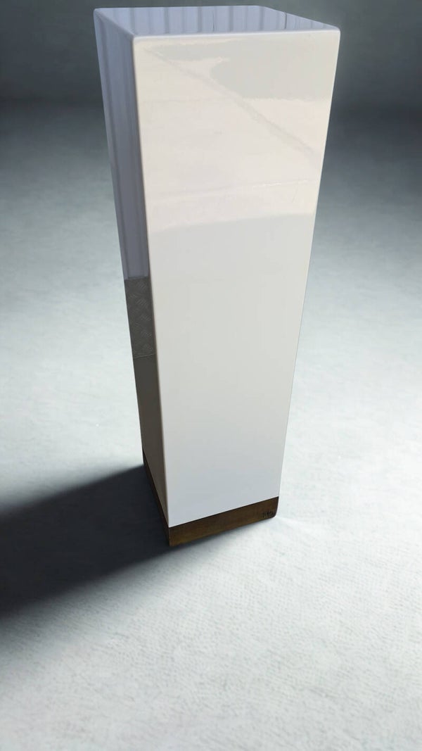 With its clean, architectural lines, this pedestal is ideal for displaying sculptures, vases, or decorative art pieces. The glossy lacquer surface catches the light beautifully, while the warm brass detail adds a luxurious contrast. A statement piece that blends seamlessly into both vintage-inspired and contemporary interiors.