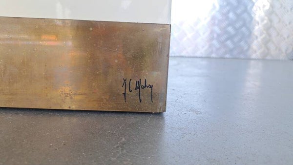 This elegant vintage pedestal, designed by Jean Claude Mahey in the 1970s, showcases the timeless glamour of French design. Crafted in high-gloss white lacquer and accented with a polished brass base, it reflects the Hollywood Regency aesthetic that made Mahey’s work so sought after by collectors and interior designers.