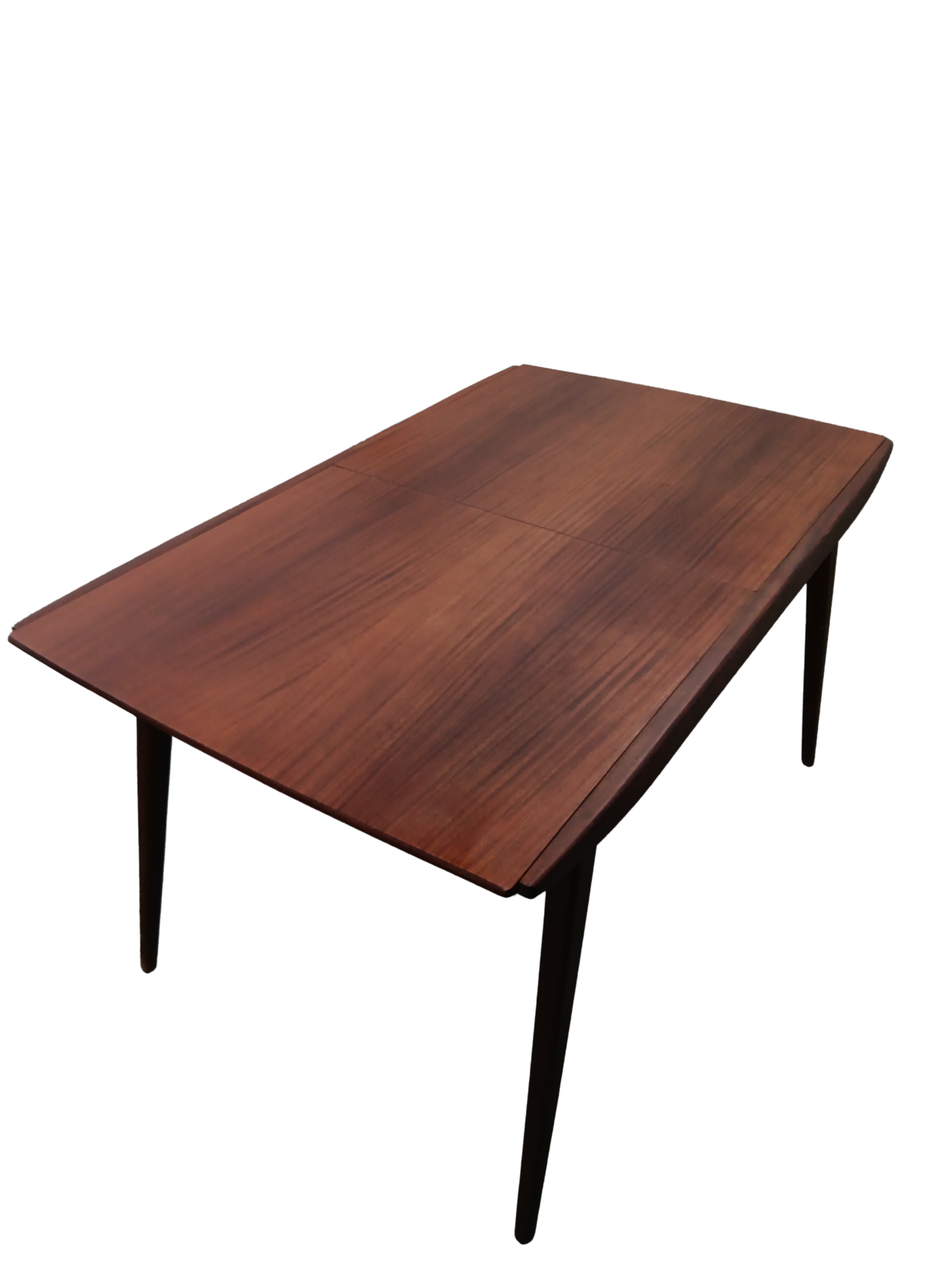Crafted from high-quality teak wood, the table showcases the rich, warm tones and fine grain patterns characteristic of the period. The legs are made of solid teak for stability, while the top combines teak veneer with a solid frame for durability and a refined finish. Its timeless design makes it an ideal centrepiece for both contemporary and vintage-inspired interiors.
